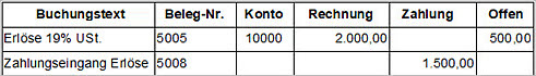 5. Bei Teilzahlungen sehen Sie den offenen Betrag.