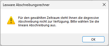 - Bei dieser Abschreibungsart gibt es keinen Übergang von degressiver zu linearer AfA.