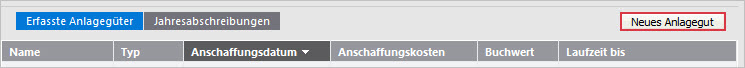 - Klicken Sie auf 'Neues Anlagegut'.