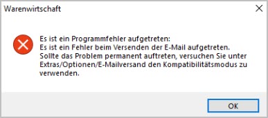 Faktura/Warenwirtschaftden Kompatibilitätsmodus überEXTRAS - Optionen - E-Mail-Versand.