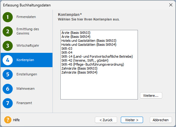 Den Kontenrahmen, mit dem Sie Ihre Buchhaltung führen, legen Sie einmalig bei der Firmenanlage fest.