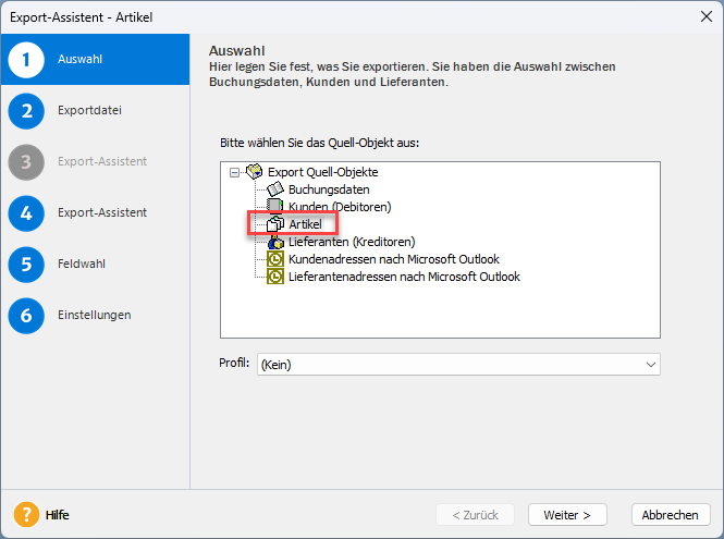 - Möchten Sie diese Export-Einstellungen für zukünftige Exporte beibehalten, dann speichern Sie sie in einem Profil ab.