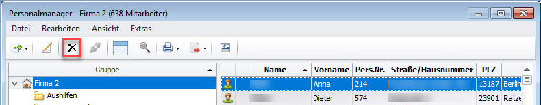 - Wählen Sie den Mitarbeiter aus, dessen Daten Sie löschen möchten.