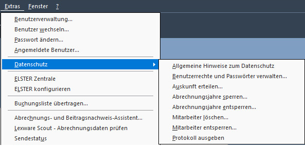 - Öffnen Sie im Menü 'Extras - Datenschutz - Abrechnungsjahre sperren'.