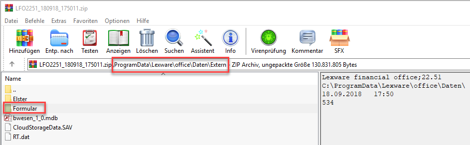 Gehen Sie in die unteren Ebenen. Die Formulardateien wurden im Ordner 'Extern' gesichert, Unterordner 'Formular'.
