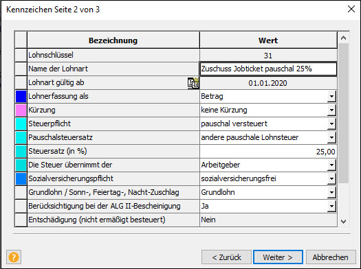 2. Schritt: Lohnart: 'Zuschuss Jobticket pauschal 25%' anlegen: