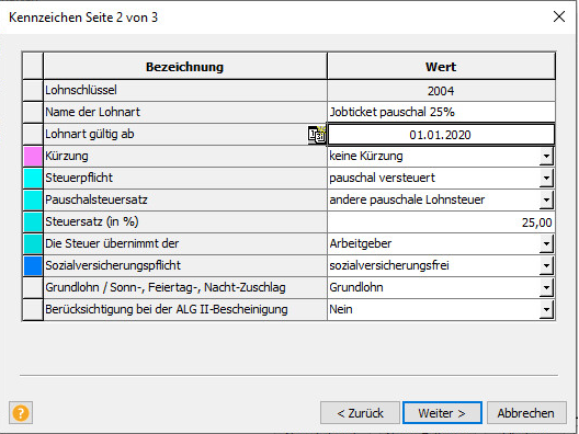 2. Schritt Lohnart 'Jobticket pauschal 25%' anlegen:
