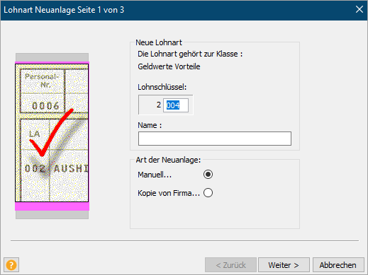 - Legen Sie die neue Lohnart mit folgenden Kennzeichen an: