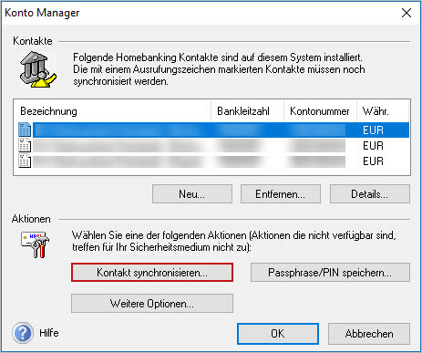 - Im 'Konto Manager' klicken Sie auf 'Kontakt synchronisieren'.