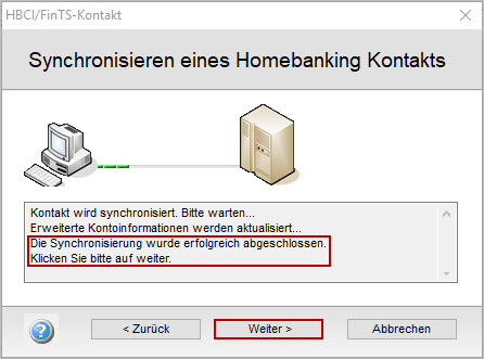 - Das Programm baut die Verbindung zum Internet auf und synchronisiert die Zugangsdaten.