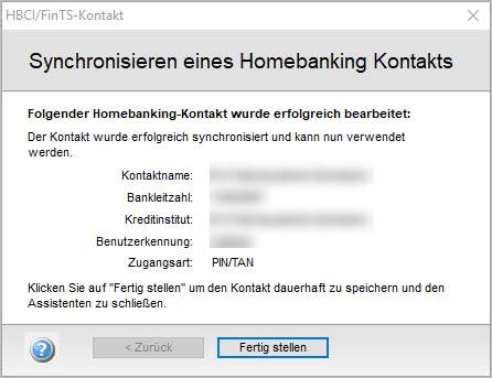 - Klicken Sie auf 'Fertig stellen'.