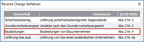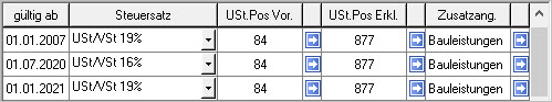 Umsatzsteuerpositionen (USt.Pos.VA) im Steuerfall 'Bauleistungen':