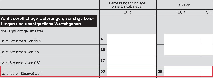 - Steuerpflichtige Umsätze zu anderen Steuersätzen.