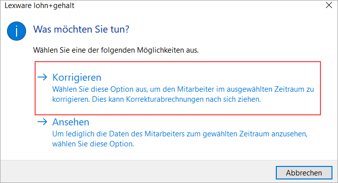 Wählen Sie bei der nachfolgenden Abfrage den Eintrag 'Korrigieren'.