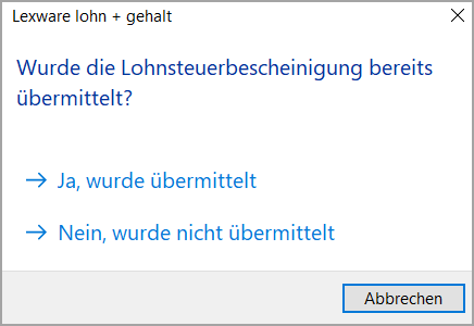 Hinweis: Ab dem Abrechnungsmonat Februar muss die Übermittlung der LStB angenommen werden, die Abfrage erscheint nicht mehr. Die Korrektur von Steuerdaten des Vorjahres ist nicht mehr möglich.