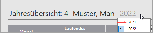 Hinweis: Das Vorjahr können Sie über die markierte Jahresauswahl aufrufen.