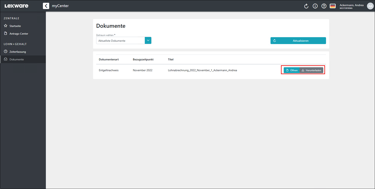 Hinweis: Wenn ein Lohn-Dokument für einen Abrechnungsmonat mehrfach zur Verfügung gestellt wird, ist das aktuellste Dokument immer oben!