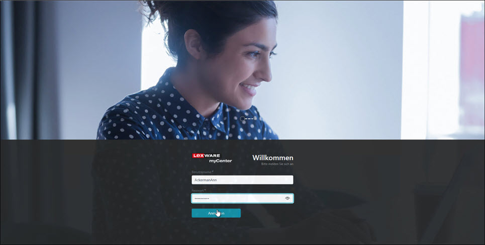 Mit Klick auf den Link in der E-Mail startet automatisch die Anmelde-Seite von Lexware myCenter.