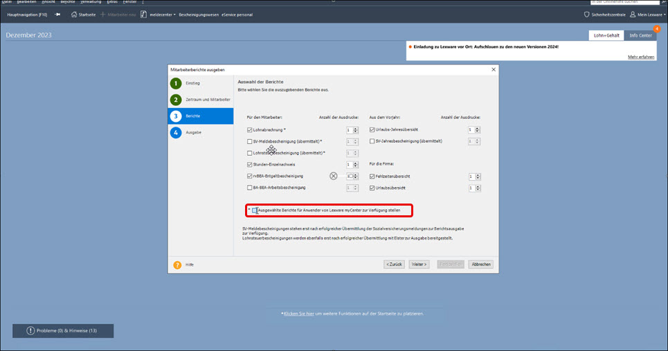 Die Lohn-Dokumente für Lexware myCenter bereitstellen