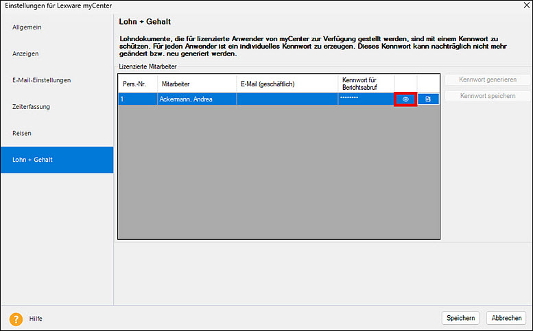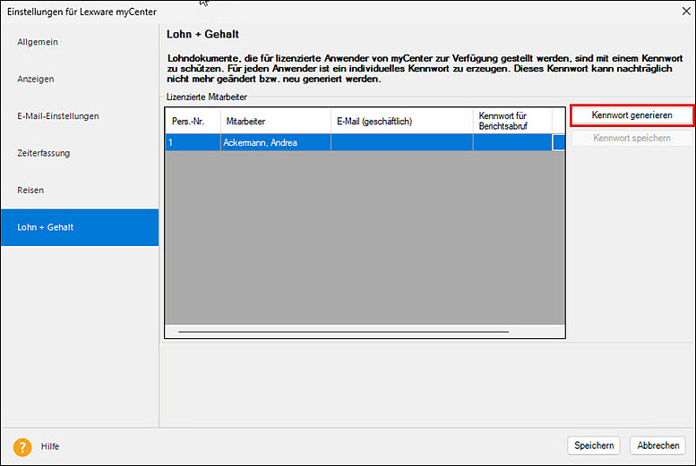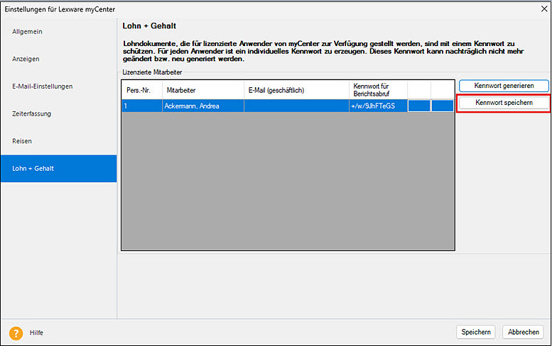 Hinweis: Mitarbeiter, die bereits ein Dokumenten-Kennwort besitzen und denen Sie aber die Lizenz entzogen haben, werden nicht mit angezeigt!