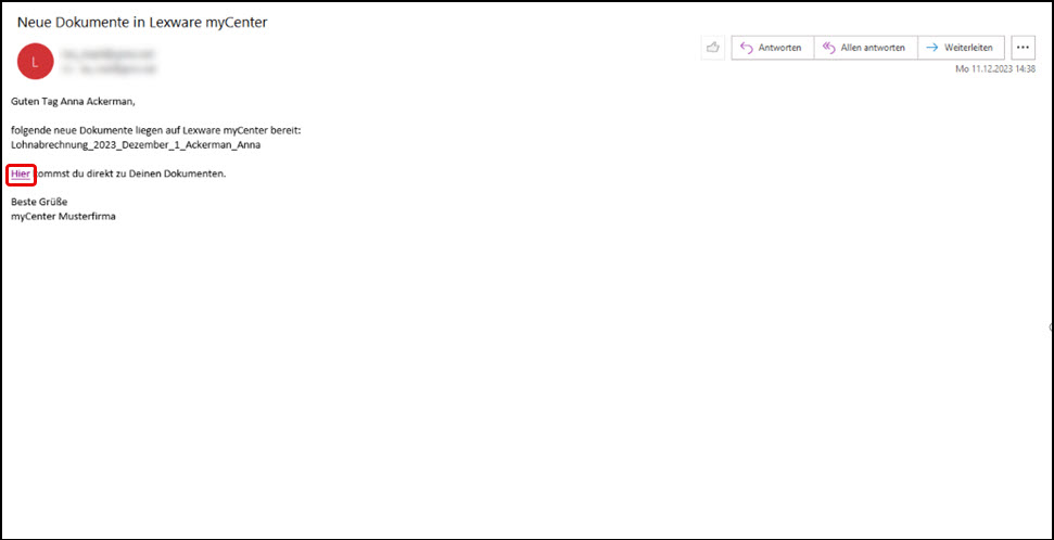Die Mitarbeiter erhalten bei jeder Bereitstellung von myCenter-Dokumenten eine Benachrichigung per E-Mail.