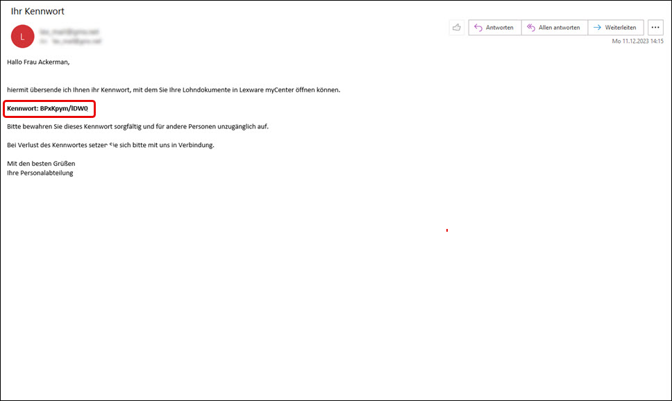 Mit einem Klick auf das Dokumenten-Symbol wird das Kennwort in die Zwischenablage kopiert. Sie können es in eine E-Mail einfügen und an den jeweiligen Mitarbeiter schicken. Wir empfehlen Ihnen, dass Sie sich dafür vorab eine Mail-Vorlage erstellen.