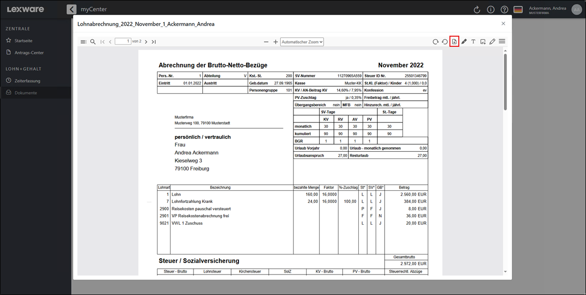 Die Lohnabrechnung in Lexware myCenter aufrufen