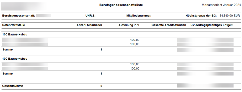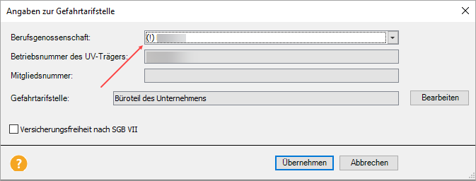 In den Mitarbeiterstammdaten ist eine ungültige Berufsgenossenschaft (nicht mehr aktiv) bzw. eine ungültige Gefahrtarifstelle ausgewählt.