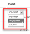 2. Sie gelangen in den Bereich Geschäftsanwendungen, wo Sie die laufende Anwendung zur Lexware Internetmarke finden (Lexware EPORTO). Zusätzlich finden Sie eine neue Anwendung lexware_internetmarke, die den Status "Angefragt" anzeigt. Stellen Sie diese um auf "freigegeben":