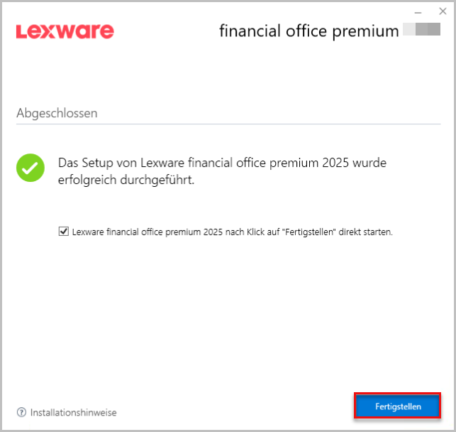 - Klicken Sie auf 'Fertig stellen', wenn die Installation abgeschlossen ist.