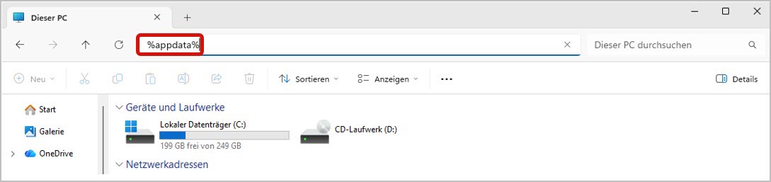%appdata%in die Adresszeile ein.