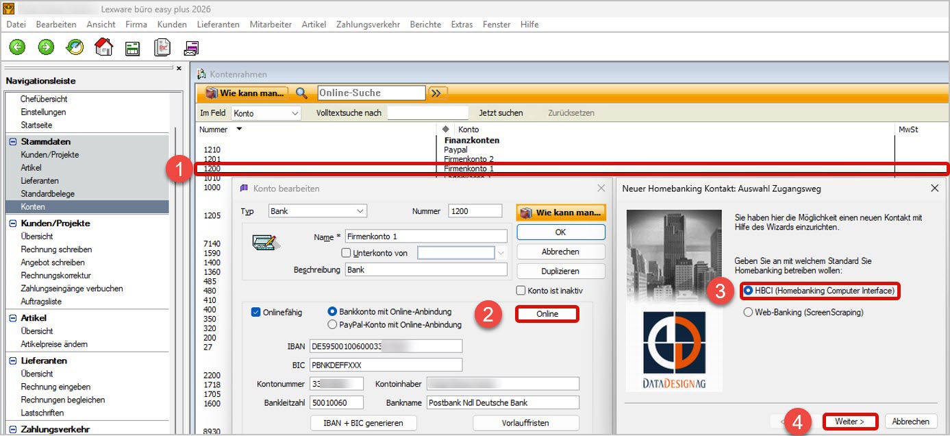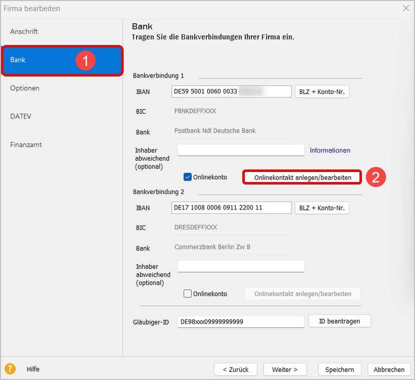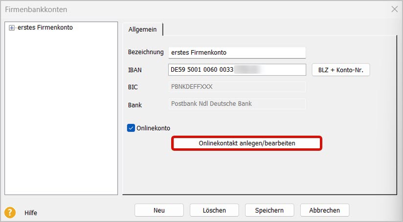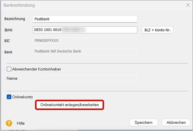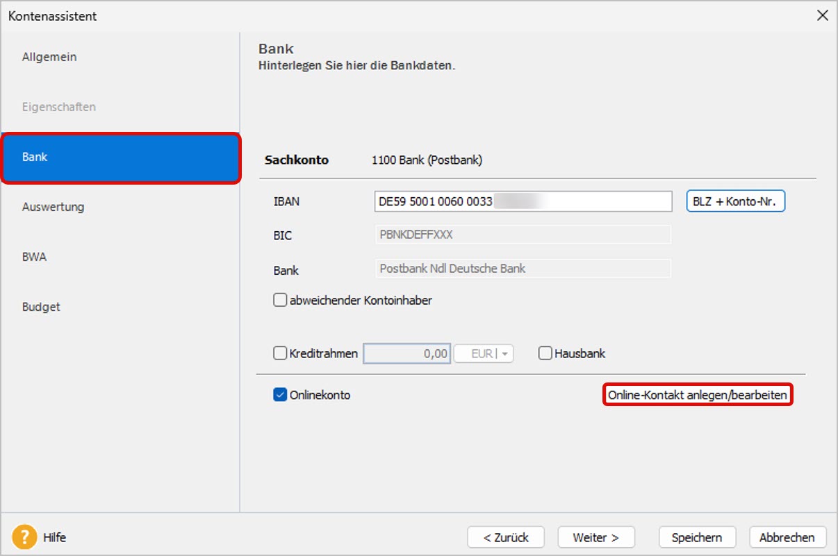 2. Richten Sie den Onlinebanking-Kontakt in spezifischen Lexware-Produkten ein