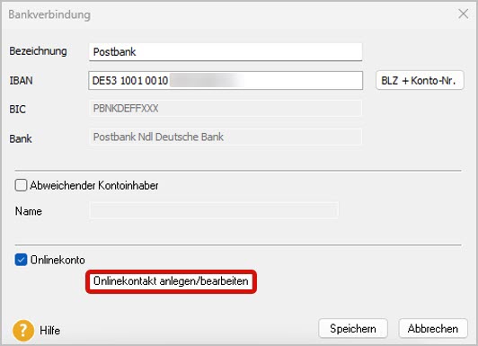 Onlinekontakt anlegen/bearbeiten.
