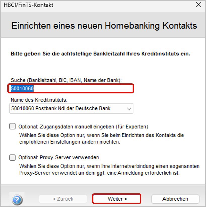 - Bankleitzahl prüfen und bestätigen: