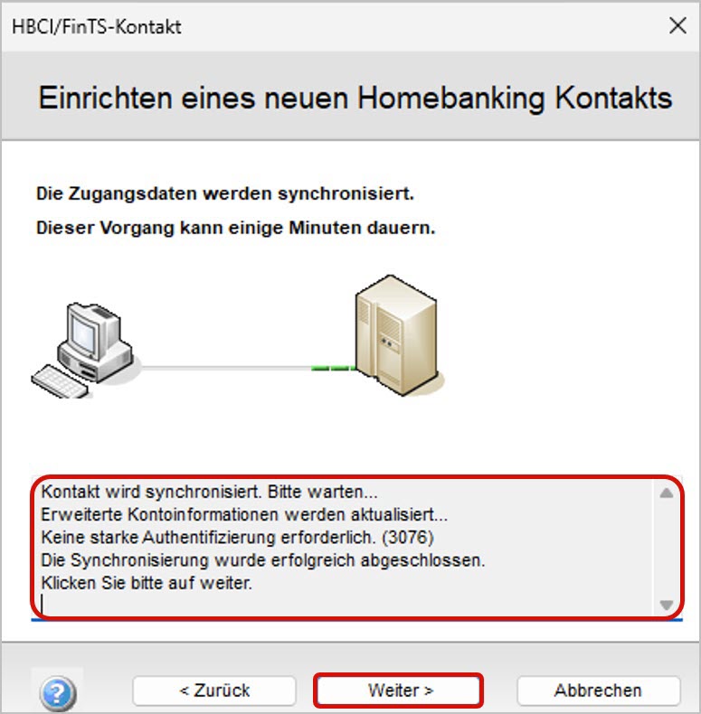 - Die HBCI-Bankparameterdaten werden aktualisiert: