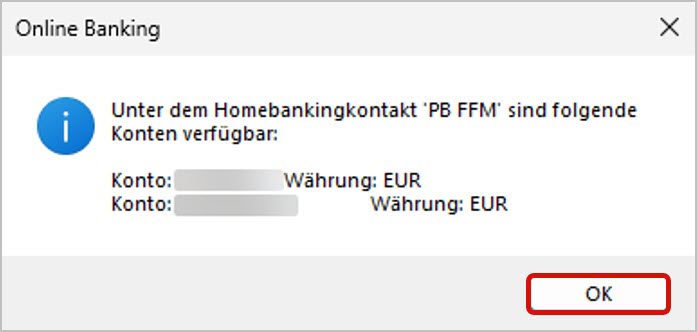 - Sie kehren zum HBCI-Kontaktmanager zurück.