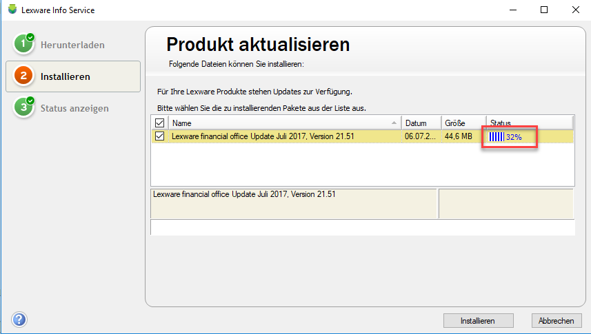 Normalerweise wird der Installationsverlauf im Lexware Info Service (kurz: LISA) dokumentiert: