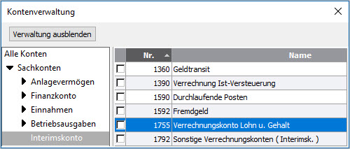 - Wechseln Sie links in die Kategorie 'Sachkonten - Interimskonto'.