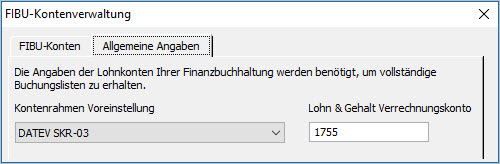 In Lexware lohn+gehalt hinterlegen Sie das Verrechnungskonto unter 'Verwaltung - Kontenverwaltung' auf der Seite 'Allgemeine Angaben'.