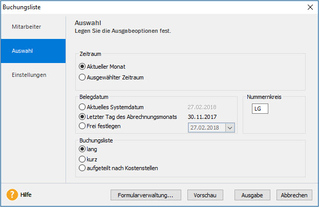 - Wählen Sie die Variante der Buchungsliste: