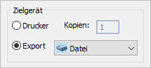- Aktivieren Sie als 'Zielgerät' die Auswahl 'Export - Datei'.