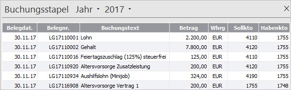 Variante Beschreibung Buchungsliste lang Grundsätzlich wird zu jeder in der Lohnabrechnung angesprochenen Lohnart ein Buchungssatz erzeugt.