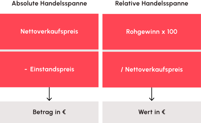 Für beides ist die Grundlage die Handelsspanne. Dabei handelt es sich um den Aufschlag, der auf den Kaufpreis eines Produktes angesetzt wird, damit mit dem Produkt beim Weiterverkauf etwas verdient wird.